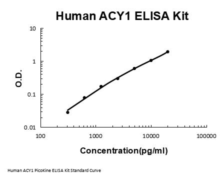 Human ACY1 ELISA Kit PicoKine® (96 Tests). Quantitate Human ACY1 in cell culture supernatants, serum and plasma (heparin, EDTA). Sensitivity: 20 pg/ml. The brand Picokine indicates this is a premium quality ELISA kit. Each Picokine kit delivers precise quantification, high sensitivity, and excellent reproducibility. Only our most reliable and effective kits qualify as Picokine, guaranteeing top-tier results for your assays.