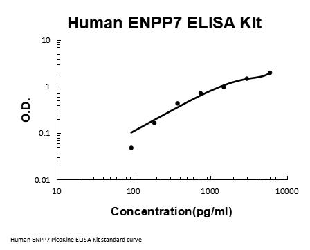 Human ENPP7 ELISA Kit PicoKine® (96 Tests). Quantitate Human ENPP7 in cell culture supernatants, serum and plasma (heparin, EDTA). Sensitivity: 10 pg/ml. The brand Picokine indicates this is a premium quality ELISA kit. Each Picokine kit delivers precise quantification, high sensitivity, and excellent reproducibility. Only our most reliable and effective kits qualify as Picokine, guaranteeing top-tier results for your assays.