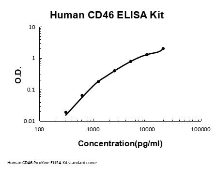 Human CD46 ELISA Kit PicoKine® (96 Tests). Quantitate Human CD46 in cell culture supernatants, serum and plasma (heparin, EDTA). Sensitivity: 2 pg/ml. The brand Picokine indicates this is a premium quality ELISA kit. Each Picokine kit delivers precise quantification, high sensitivity, and excellent reproducibility. Only our most reliable and effective kits qualify as Picokine, guaranteeing top-tier results for your assays.