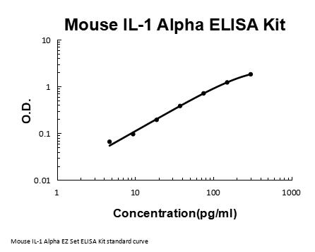Mouse IL-1 Alpha/IL-1F1/IL1A ELISA Kit EZ-Set™ (DIY Antibody Pairs) (antibody pairs and standards for assay development). Quantitate Mouse Il1a in cell culture supernatants and serum.