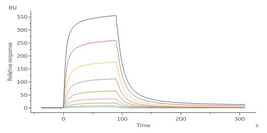 This protein carries a polyhistidine tag at the N-terminus, followed by an Avi tag (Avitag™). The protein has a calculated MW of 22.9 kDa. The protein migrates as 27 kDa under reducing (R) condition (SDS-PAGE).