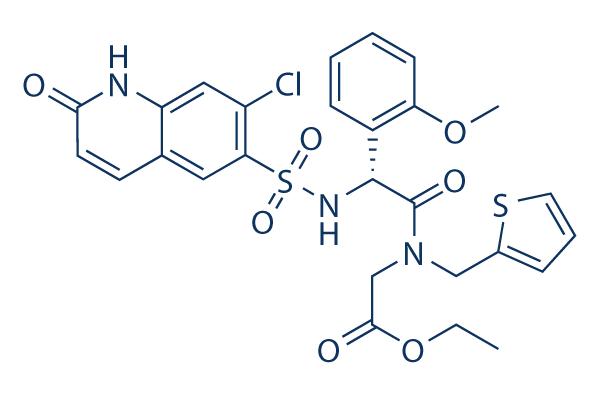 Smiles CCOC(=O)CN(CC1=CC=CS1)C(=O)C(C2=CC=CC=C2OC)NS(=O)(=O)C3=C(C=C4C(=C3)C=CC(=O)N4)Cl