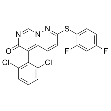Smiles O=C1N=CN(C(C=C2)=C1C3=C(Cl)C=CC=C3Cl)N=C2SC4=CC=C(F)C=C4F