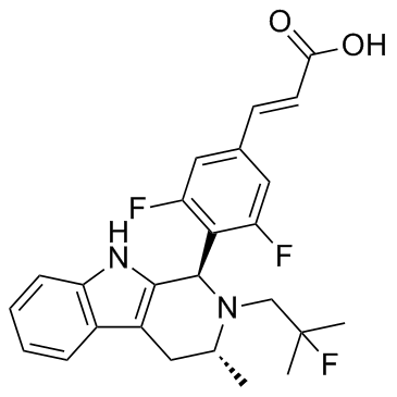 Citations [1]Weir HM, et al. AZD9496: An Oral Estrogen Receptor Inhibitor That Blocks the Growth of ER-Positive and ESR1-Mutant Breast Tumors in Preclinical Models. Cancer Res. 2016 Jun 1;76(11):3307-18.|[2]De Savi C, et al. Optimization of a Novel Binding Motif to (E)-3-(3,5-Difluoro-4-((1R,3R)-2-(2-fluoro-2-methylpropyl)-3-methyl-2,3,4,9-tetrahydro-1H-pyrido[3,4-b]indol-1-yl)phenyl)acrylic Acid (AZD9496), a Potent and Orally Bioavailable Selective Estrogen Receptor Downregulator and Antagonist. J Med Chem. 2015 Oct 22;58(20):8128-40.|[3]Gough SM, et al. Oral Estrogen Receptor PROTAC Vepdegestrant (ARV-471) Is Highly Efficacious as Monotherapy and in Combination with CDK4/6 or PI3K/mTOR Pathway Inhibitors in Preclinical ER+ Breast Cancer Models. Clin Cancer Res. 2024 Aug 15;30(16):3549-3563.