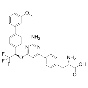 Smiles NC1=NC(C2=CC=C(C=C2)C[C@@H](C(O)=O)N)=CC(O[C@H](C3=CC=C(C4=CC(OC)=CC=C4)C=C3)C(F)(F)F)=N1