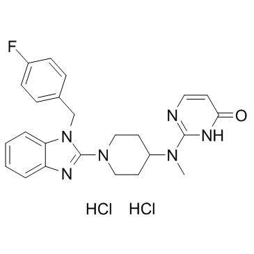 Smiles O=C1NC(N(C2CCN(C3=NC4=CC=CC=C4N3CC5=CC=C(F)C=C5)CC2)C)=NC=C1.Cl.Cl