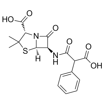 Citations [1]Scott RE, et, al. Synergistic activity of carbenicillin and gentamicin in experimental Pseudomonas bacteremia in neutropenic rats. Antimicrob Agents Chemother. 1976 Oct;10(4):646-51. |[2]Neu HC, et, al. Carbenicillin and ticarcillin. Med Clin North Am. 1982 Jan;66(1):61-77.