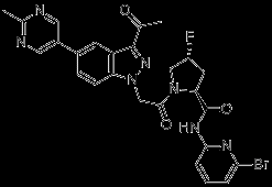 Smiles N(C(CN1C2=C(C=C(C3=CN=C(C)N=C3)C=C2)C(C(C)=O)=N1)=O)1C[C@@H](F)C[C@@H]1C(NC1=NC(Br)=CC=C1)=O