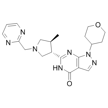 PF-04447943 is a brain-permeable phosphodiesterase (PDE) inhibitor that is selective for PDE9A (IC50 = 12 nM) over other PDEs (IC50s = >940 nM) in enzymatic assays of second messenger hydrolysis.