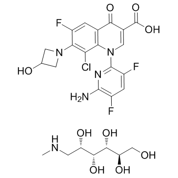 Delafloxacin meglumine (ABT492 meglumine; RX-3341 meglumine; WQ-3034 meglumine) is a broad-spectrum fluoroquinolone antibiotic. Delafloxacin has a broad spectrum of activity that includes drug-resistant Staphylococcus aureus, Streptococcus pneumoniae, and