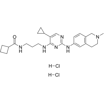 Cyclobutanecarboxamide, N-[3-[[5-cyclopropyl-2-[(1, 2, 3, 4-tetrahydro-2-methyl-6-isoquinolinyl)amino]-4-pyrimidinyl]amino]propyl]-, hydrochloride (1:2)