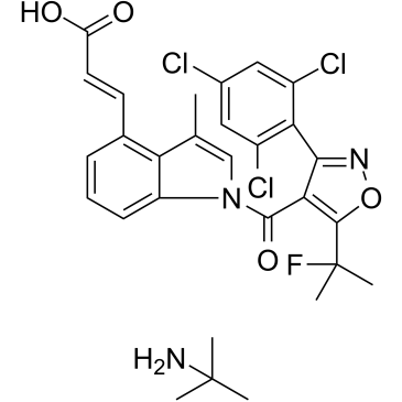 Smiles CC1=CN(C2=CC=CC(=C12)/C=C/C(=O)O)C(=O)C3=C(ON=C3C4=C(C=C(C=C4Cl)Cl)Cl)C(C)(C)F.CC(C)(C)N