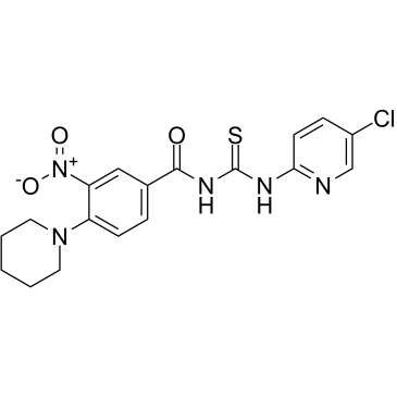 Smiles O=C(C1C=C([N+](=O)[O-])C(N2CCCCC2)=CC=1)NC(=S)NC1C=CC(Cl)=CN=1