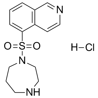 Fasudil Hcl(HA-1077; AT-877) is a potent inhibitor of ROCK-II, PKA, PKG, PKC, and MLCK with Ki of 0.33 μM, 1.6 μM, 1.6 μM, 3.3 μM and 36 μM, respectively.