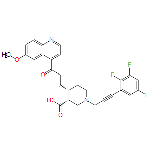 Smiles O=C([C@H]1CN(CC#CC2=CC(F)=CC(F)=C2F)CC[C@H]1CCC(C3=CC=NC4=CC=C(OC)C=C34)=O)O