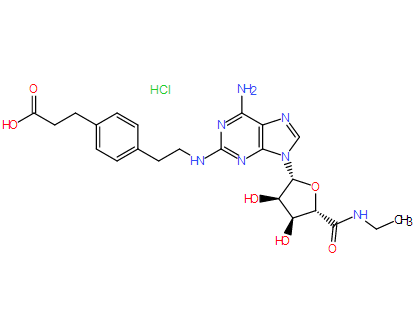 Smiles O=C(O)CCC1=CC=C(CCNC2=NC(N)=C3N=CN([C@@H]4O[C@H](C(NCC)=O)[C@@H](O)[C@H]4O)C3=N2)C=C1.[H]Cl