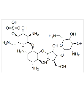 Smiles O=S(O)(O)=O.O=S(O)(O)=O.O=S(O)(O)=O.N[C@@H](C[C@H]1N)[C@@]([C@@H]([C@H]1O)O[C@@](O[C@H](CO)[C@H]2O[C@@]([C@@H]([C@@H](O)[C@@H]3O)N)([H])O[C@H]3CN)([H])[C@@H]2O)([H])O[C@H]([C@@H]([C@@H](O)[C@@H]4O)N)O[C@@H]4CN