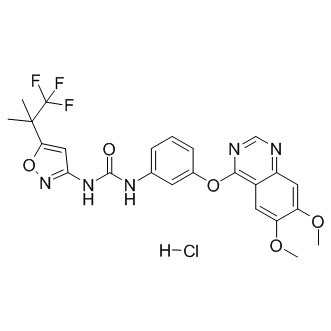 Smiles O=C(NC1C=C(OC2N=CN=C3C=C(OC)C(OC)=CC=23)C=CC=1)NC1C=C(C(C(F)(F)F)(C)C)ON=1.[H]Cl