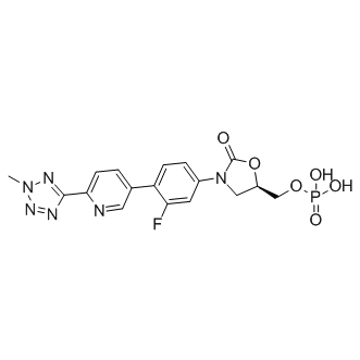 Torezolid phosphate is a novel oxazolidinone for gram-positive infections, has an IC50 of 8.7 μM and 5.7 μM for monoamine oxidase (MAO)-A and MAO-B, respectively.