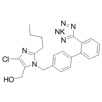 Losartan is an angiotensin II receptor antagonist, competes with the binding of angiotensin II to AT1 receptors with IC50 of 20 nM.