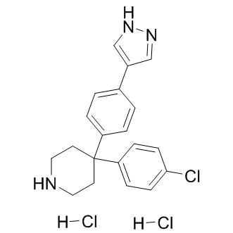 Smiles ClC1=CC=C(C=C1)C2(CCNCC2)C3=CC=C(C=C3)C4=CNN=C4.[H]Cl.[H]Cl