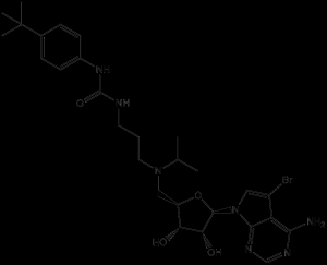 Chemical Name: 1-(3-((((2R, 3S, 4R, 5R)-5-(4-amino-5-bromo-7H-pyrrolo[2, 3-d]pyrimidin-7-yl)-3, 4-dihydroxytetrahydrofuran-2-yl)methyl)(isopropyl)amino)propyl)-3-(4-isobutylphenyl)urea