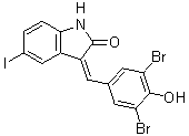 Description: GW5074 (GW-5074; GW 5074) is a novel, potent and selective c-Raf inhibitor with potential neuroprotective activity. It inhibits c-Raf with an IC50 of 9 nM and exhibits no activities against other kinases such as JNK1/2/3, MKK6/7, CDK1/2, MEK1, c-Src, VEGFR2, p38 MAP, or c-Fms. GW-5074 is able to prevent neurodegeneration and improve behavioral outcome in an animal model of Huntington's disease. GW 5074 has therapeutic potential for treating neurodegenerative pathologies in humans.