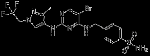 Chemical Name: 4-((5-bromo-2-((3-methyl-1-(2, 2, 2-trifluoroethyl)-1H-pyrazol-4-yl)amino)pyrimidin-4-ylamino)methyl)benzenesulfonamide