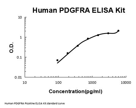 Human PDGFRA ELISA Kit PicoKine® (96 Tests). Quantitate Human PDGFRA in cell culture supernatants, serum and plasma (heparin, EDTA). Sensitivity: 45 pg/ml. The brand Picokine indicates this is a premium quality ELISA kit. Each Picokine kit delivers precise quantification, high sensitivity, and excellent reproducibility. Only our most reliable and effective kits qualify as Picokine, guaranteeing top-tier results for your assays.