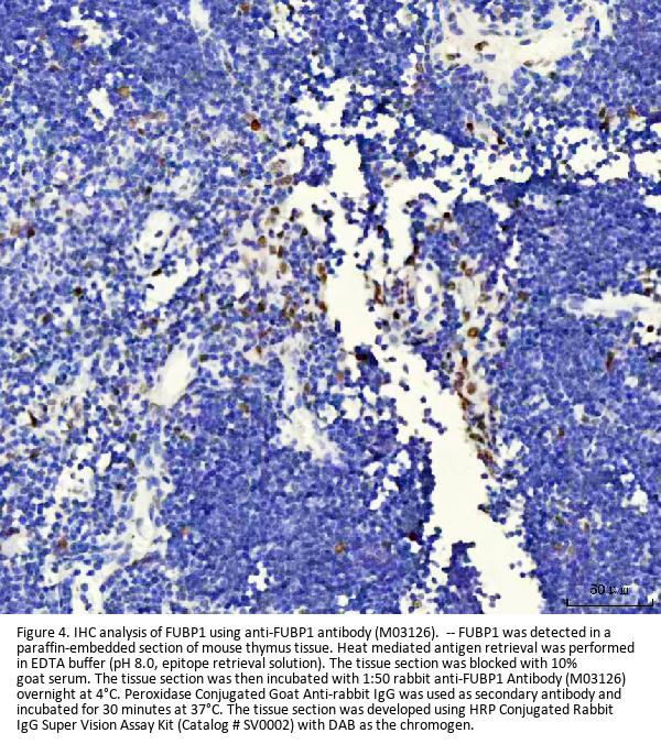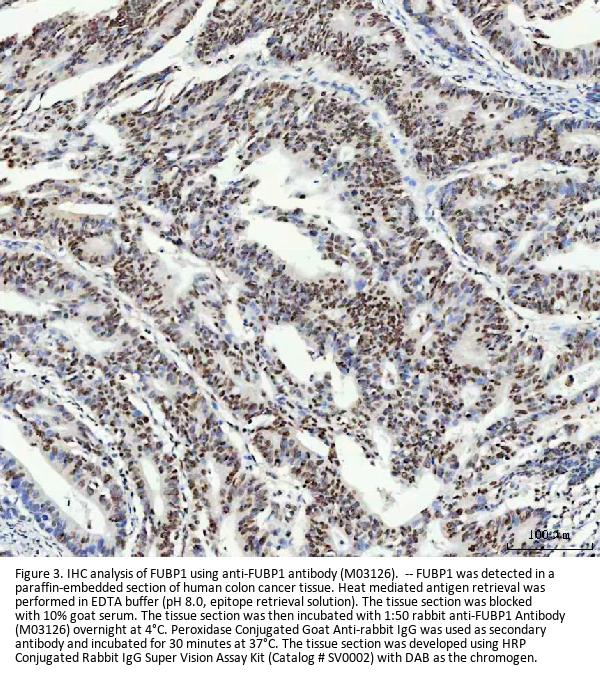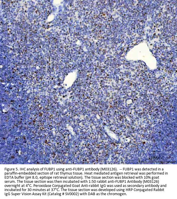 Boster Bio Anti-FUBP1 Rabbit Monoclonal Antibody catalog # M03126. Tested in WB, IHC, ICC/IF, Flow Cytometry applications. This antibody reacts with Human, Mouse, Rat.