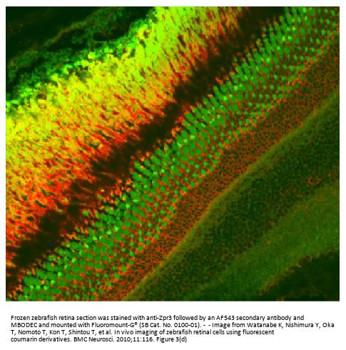 Fluoromount-G® is a water-soluble compound recommended for slides mounted after a staining procedure having an aqueous final step. Since Fluoromount-G® is water-soluble, the coverslip may be removed by submerging the slide in a PBS solution until the coverslip is loosened. This mounting medium also provides a semi-permanent seal for storage of slide preparations.