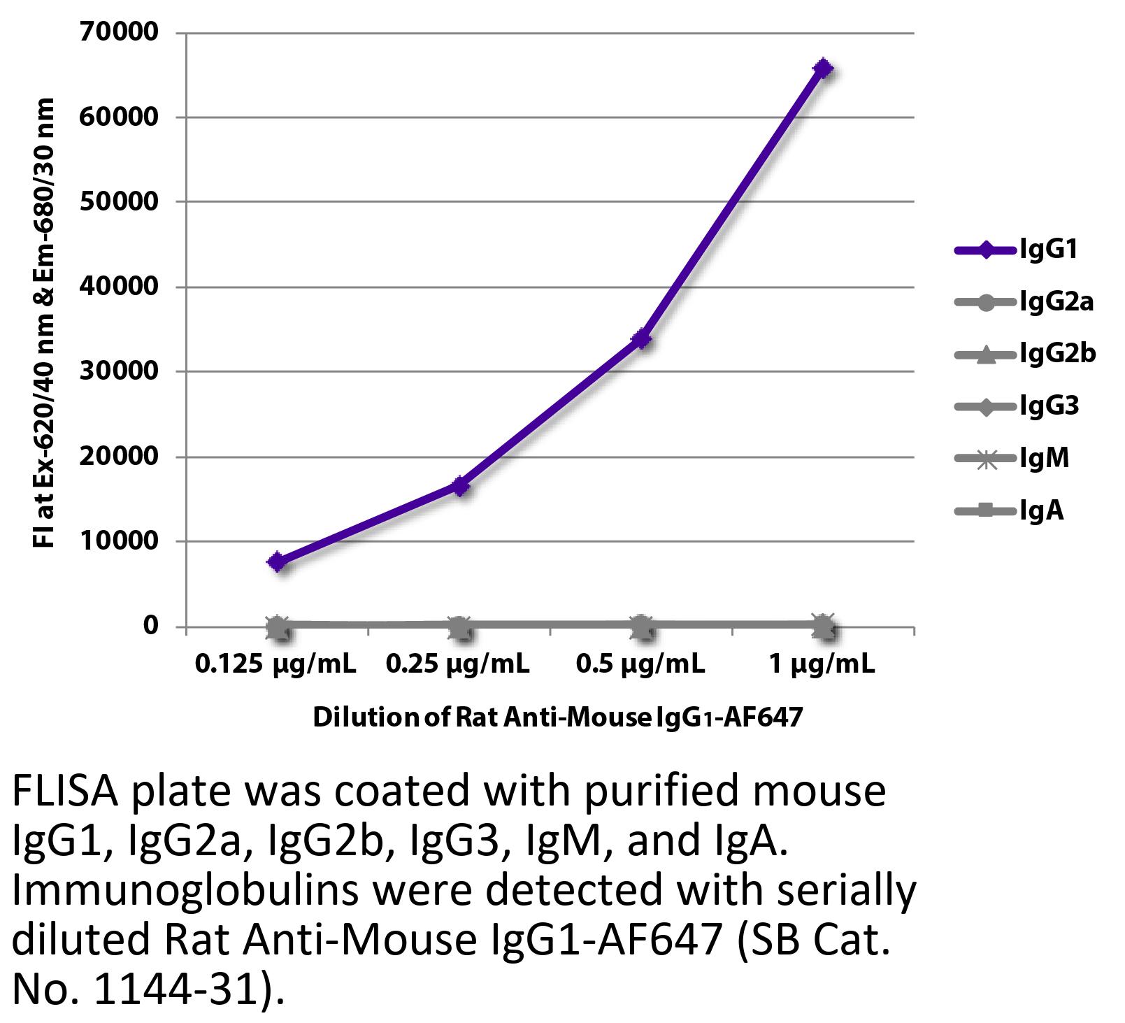 Alexa Fluor 647 Anti-Mouse IgG1 antibody for use in flow cytometry, immunohistochemistry / immunocytochemistry, and western blot assays.