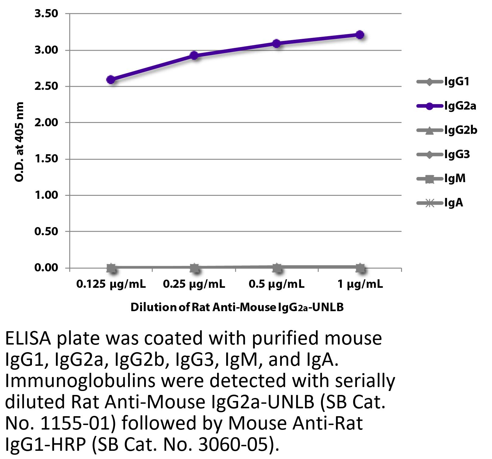 Purified Anti-Mouse IgG2a antibody for use in ELISA, flow cytometry, immunohistochemistry / immunocytochemistry, western blot, and multiplex assays.