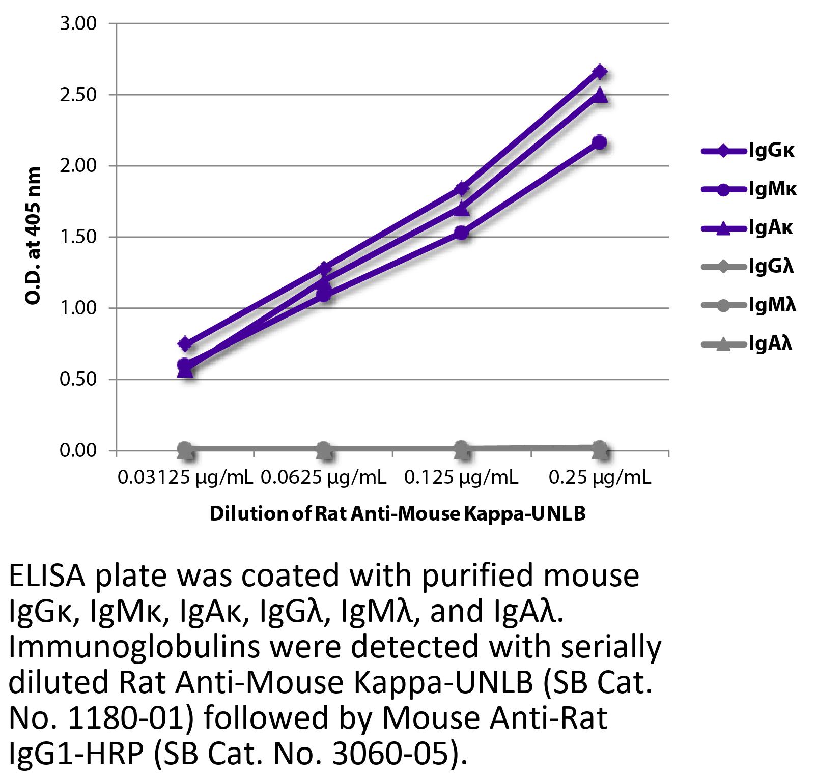 Purified Anti-Mouse Kappa antibody for use in ELISA, flow cytometry, immunocytochemistry, and western blot assays.
