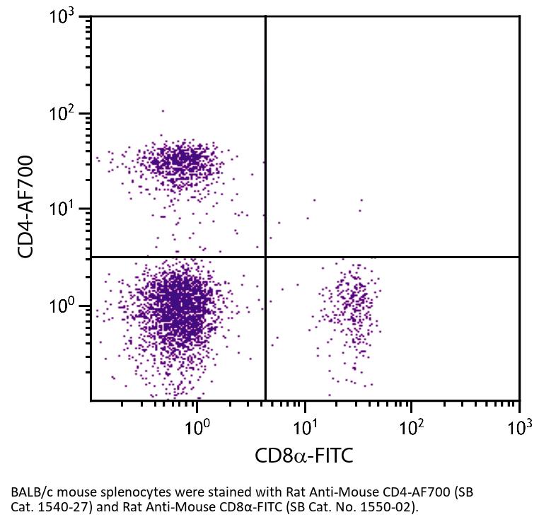 CD4 is a type I transmembrane glycoprotein expressed on most thymocytes and the helper/inducer subpopulation of mature T lymphocytes of all mouse strains tested. CD4 has also been detected at low density on pluripotent hematopoietic stem cells, bone marrow myeloid precursors, and intrathymic lymphoid precursors. The CD4 antigen functions as a co-receptor, interacting with class II major histocompatability complex (MHC) molecules in the recognition of foreign antigens by T cells. In vivo and in vitro treatment with the GK1.5 monoclonal antibody effectively depletes CD4+ cells. GK1.5 also blocks helper T cell responses to MHC class II antigens, including cytolysis, proliferation, allogeneic B cell help, and release of lymphokines.