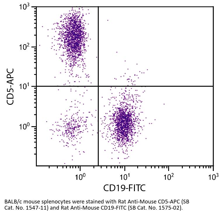 CD5, also known as Lyt-1, is a monomeric type I transmembrane glycoprotein expressed on thymocytes, T lymphocytes, and a subset of B lymphocytes, but not on natural killer (NK) cells. It has been identified as the major ligand of the B-cell antigen CD72. The frequency of CD5+ B cells exhibits strain-dependent variation, and the phenotypic, anatomical, functional, developmental, and pathological characteristics of the CD5+ B cells suggest that they may represent a distinct lineage, known as B-1 cells. Binding of CD5 on the T cell surface can augment alloantigen- or mitogen-induced lymphocyte proliferation and induces increased cytosolic free calcium, IL-2 secretion, and IL-2R expression. It has been proposed that CD5 negatively regulates signal transduction mediated by the T-cell and B-cell receptors.