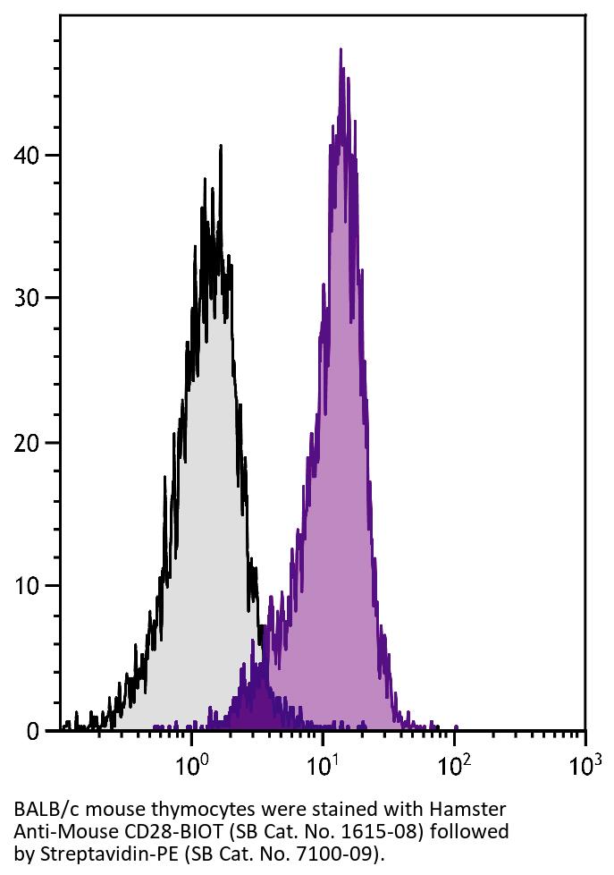 CD28 is a type I disulfide-linked homodimer that is constitutively expressed on most thymocytes, at low density on nearly all CD4+ and CD8+ peripheral T lymphocytes and at very low levels on NK cells. Its expression is upregulated upon T-cell activation. CD28 is a ligand for CD80 (B7-1) and CD86 (B7-2) on B cells and other antigen presenting cells and plays an important role in the interaction between T cells and B cells. CD28 is a costimulatory receptor involved in many, but not all, T-cell independent immune responses.