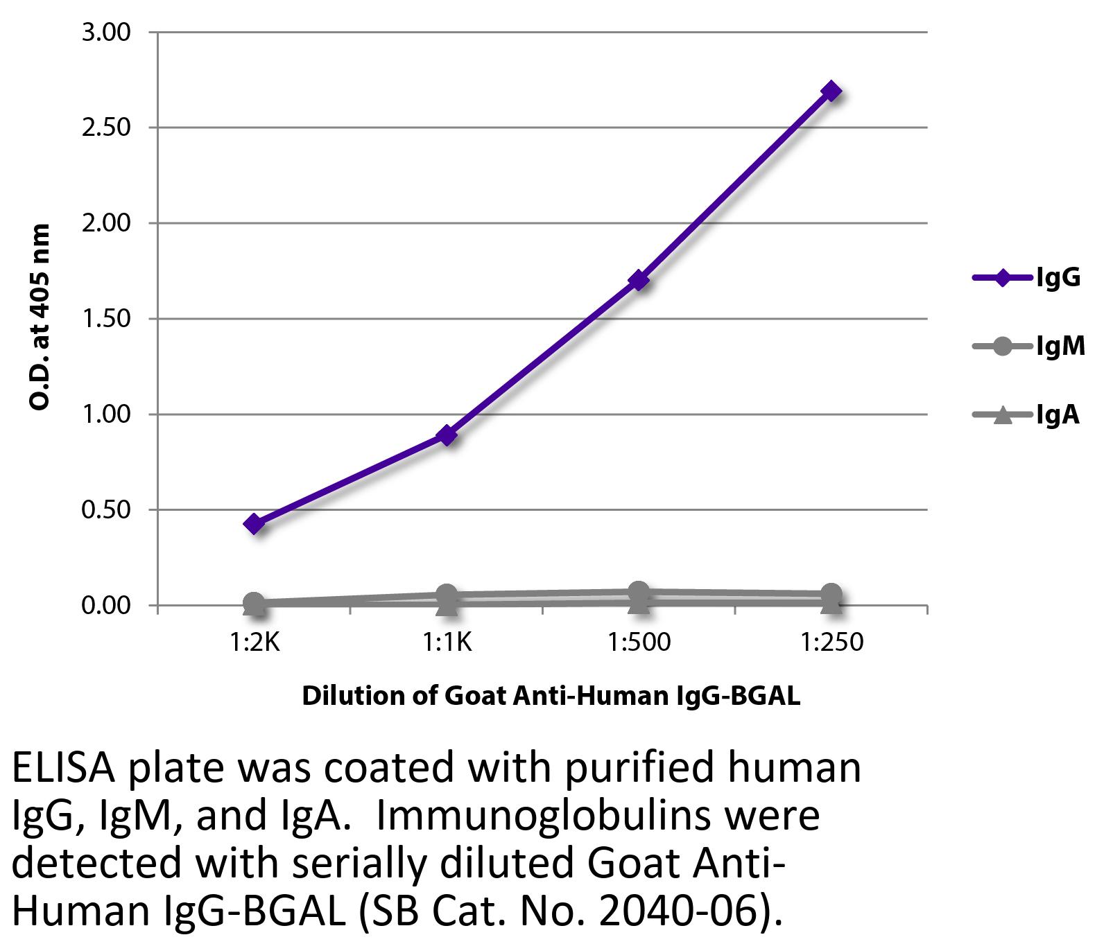 Goat Anti-Human IgG-β-galactosidase antibody for use in ELISA and immunohistochemistry / immunocytochemistry assays.