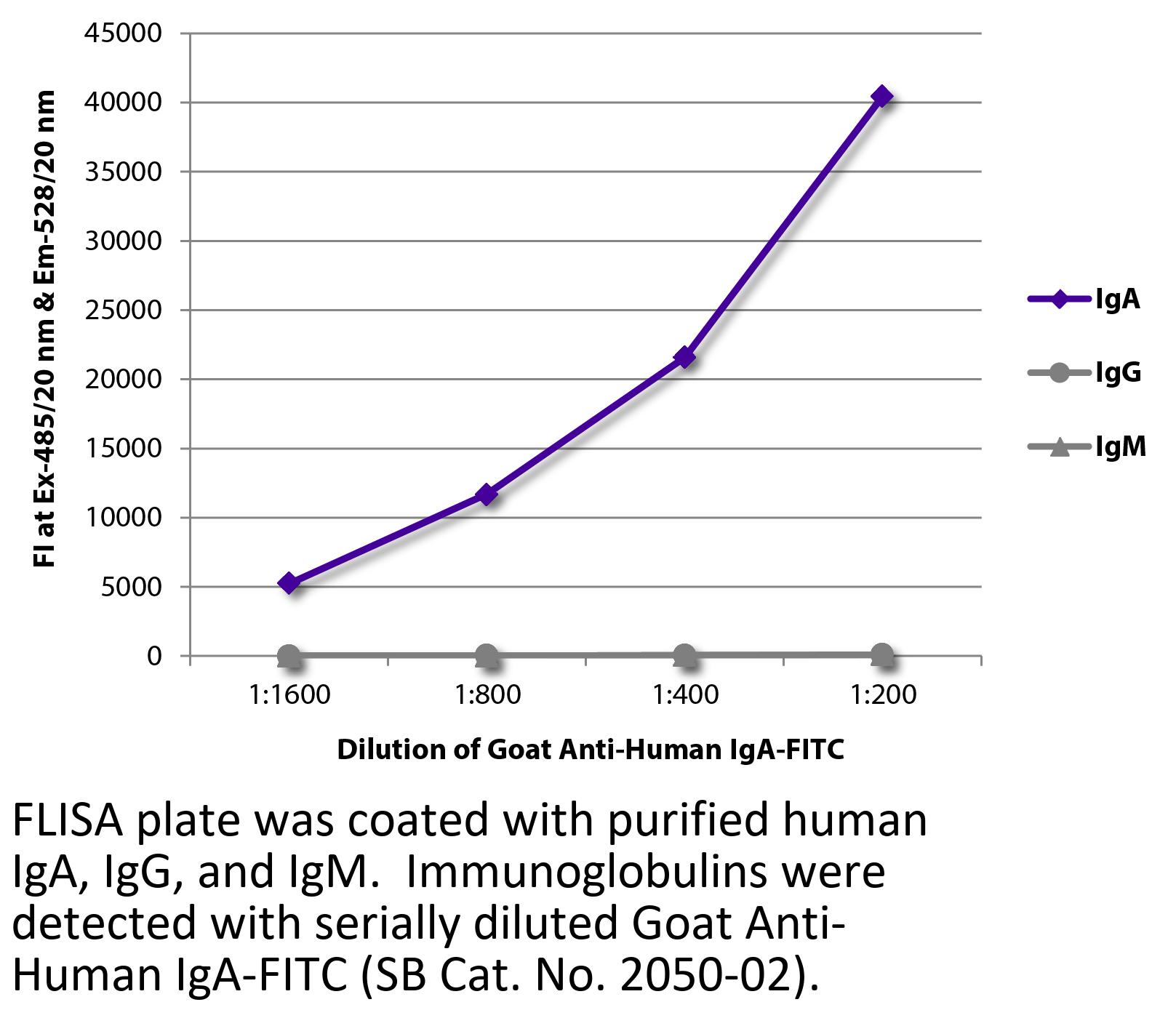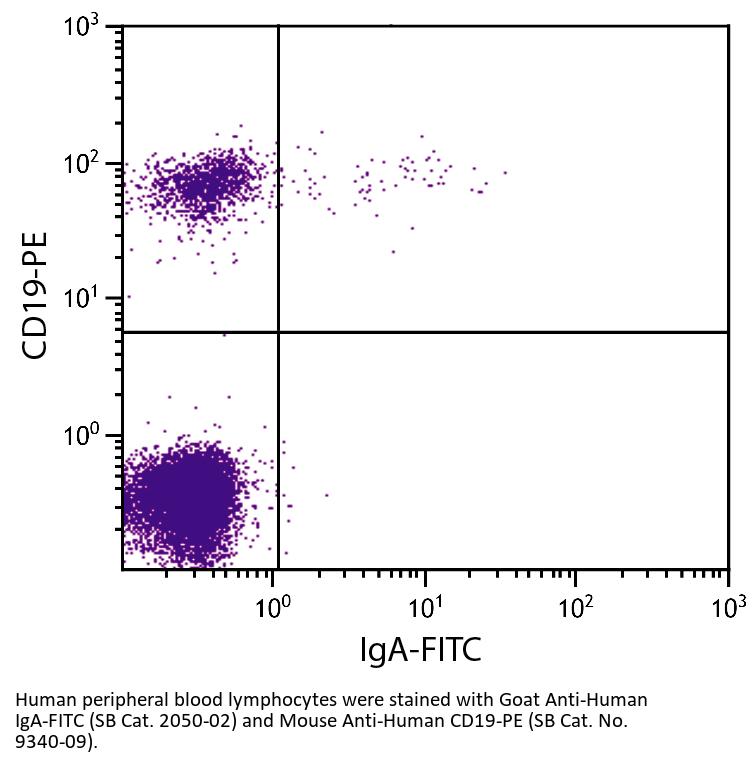Goat Anti-Human IgA-FITC for use in flow cytometry, immunohistochemistry / immunocytochemistry, and western blot assays.