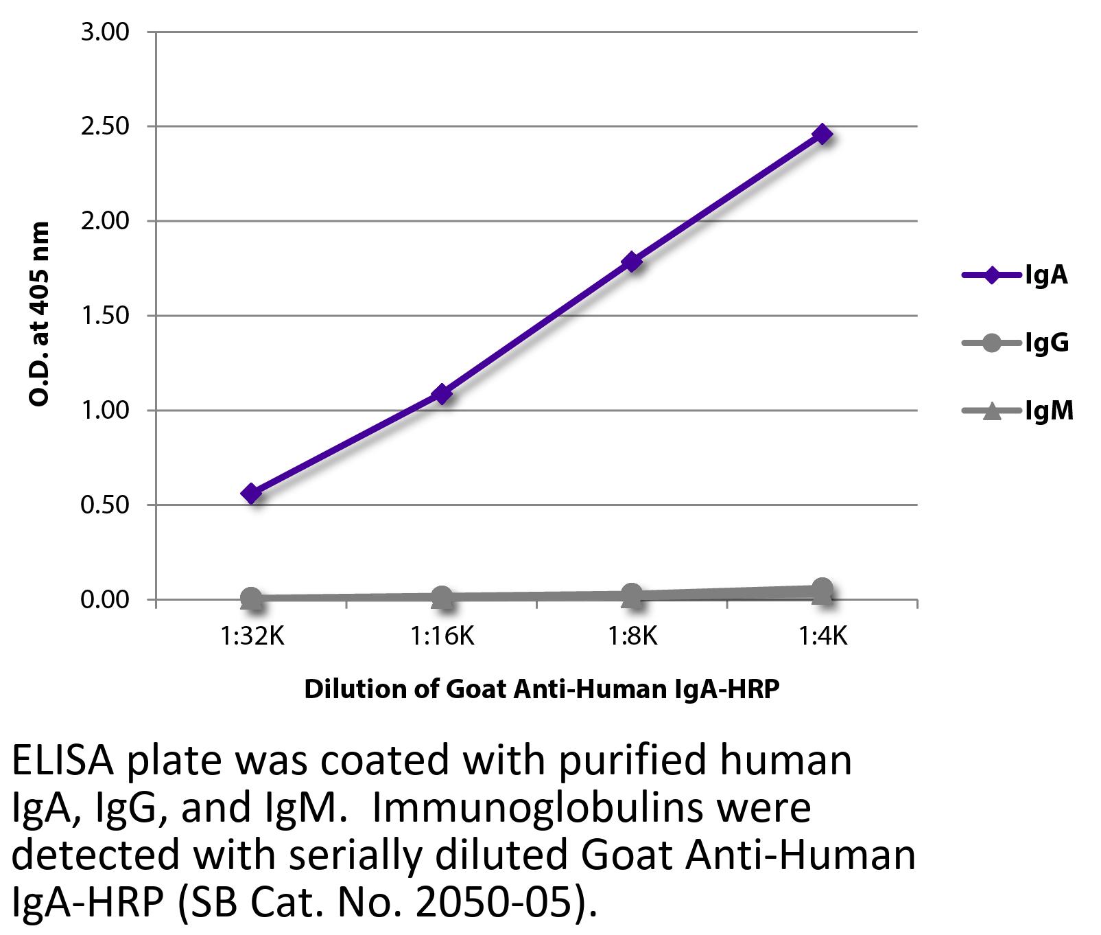 Goat Anti-Human IgA-HRP antibody for use in ELISA, immunohistochemistry / immunocytochemistry, western blot, immunoprecipitation, and ELISpot assays.