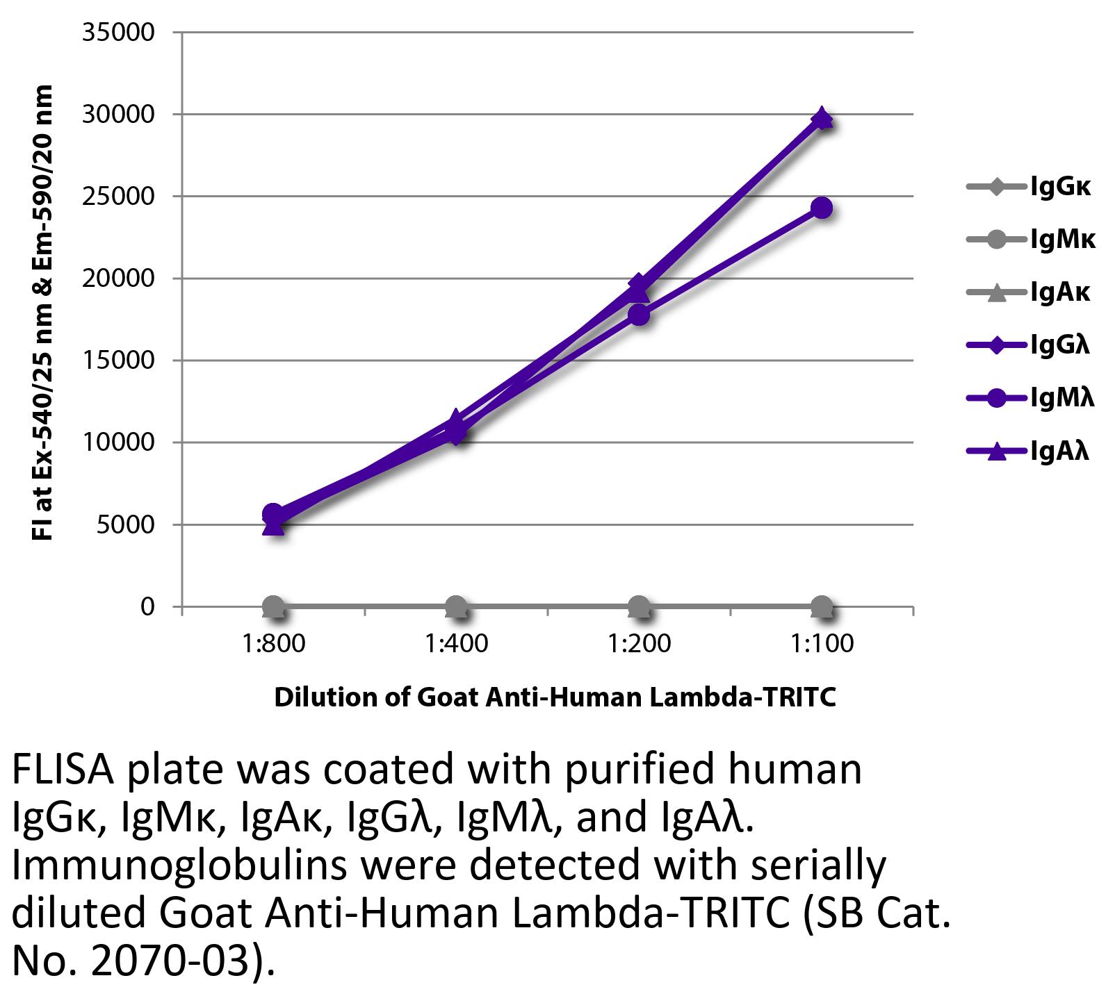 Goat Anti-Human Lambda-TRITC antibody for use in immunohistochemistry / immunocytochemistry and western blot assays.