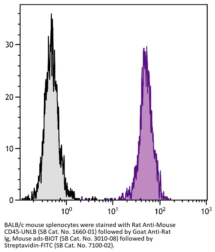 Goat Anti-Rat Ig-Biotin antibody with minimal reactivity to mouse proteins for use in ELISA, flow cytometry, immunohistochemistry / immunocytochemistry, and western blot assays.