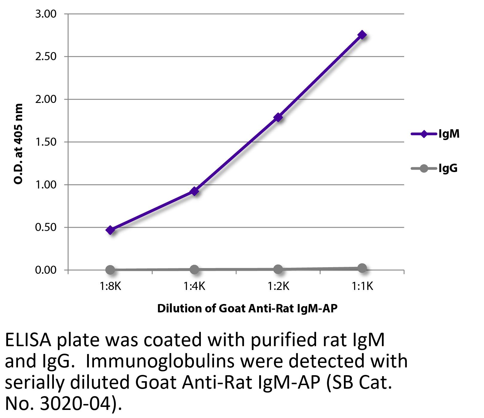 Goat Anti-Rat IgM-AP antibody for use in ELISA, immunohistochemistry / immunocytochemistry, and western blot assays.