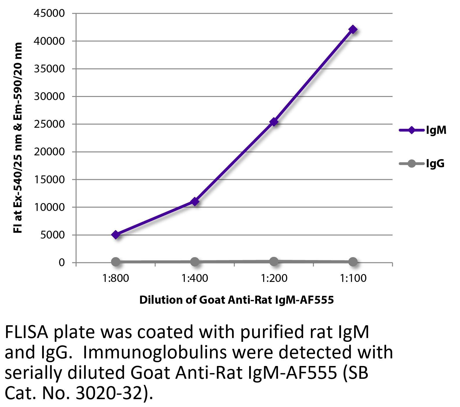 Goat Anti-Rat IgM-Alexa Fluor 555 antibody for use in immunohistochemistry / immunocytochemistry and western blot assays.