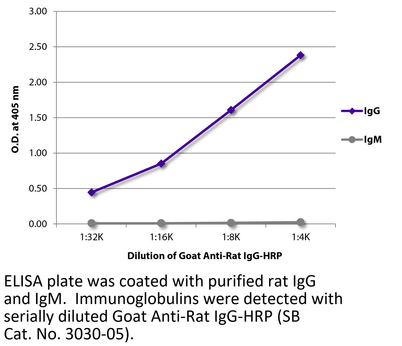 Goat Anti-Rat IgG-HRP antibody for use in ELISA, immunohistochemistry / immunocytochemistry, and western blot assays.