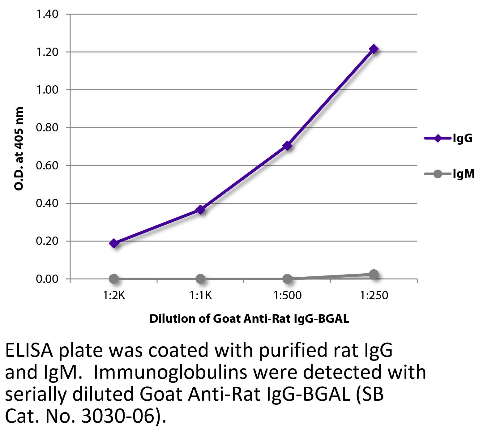 Goat Anti-Rat IgG-β-galactosidase antibody for use in ELISA and immunohistochemistry / immunocytochemistry assays.
