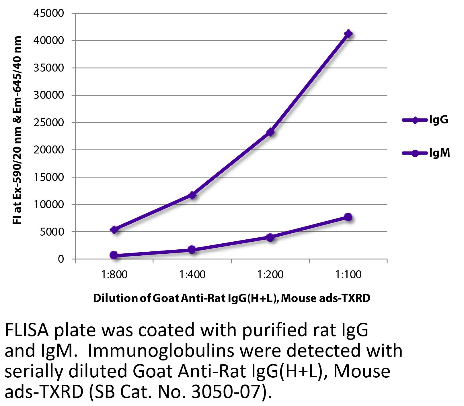 Goat Anti-Rat IgG(H+L)-Texas Red antibody with minimal reactivity to mouse proteins for use in flow cytometry and immunohistochemistry / immunocytochemistry assays.