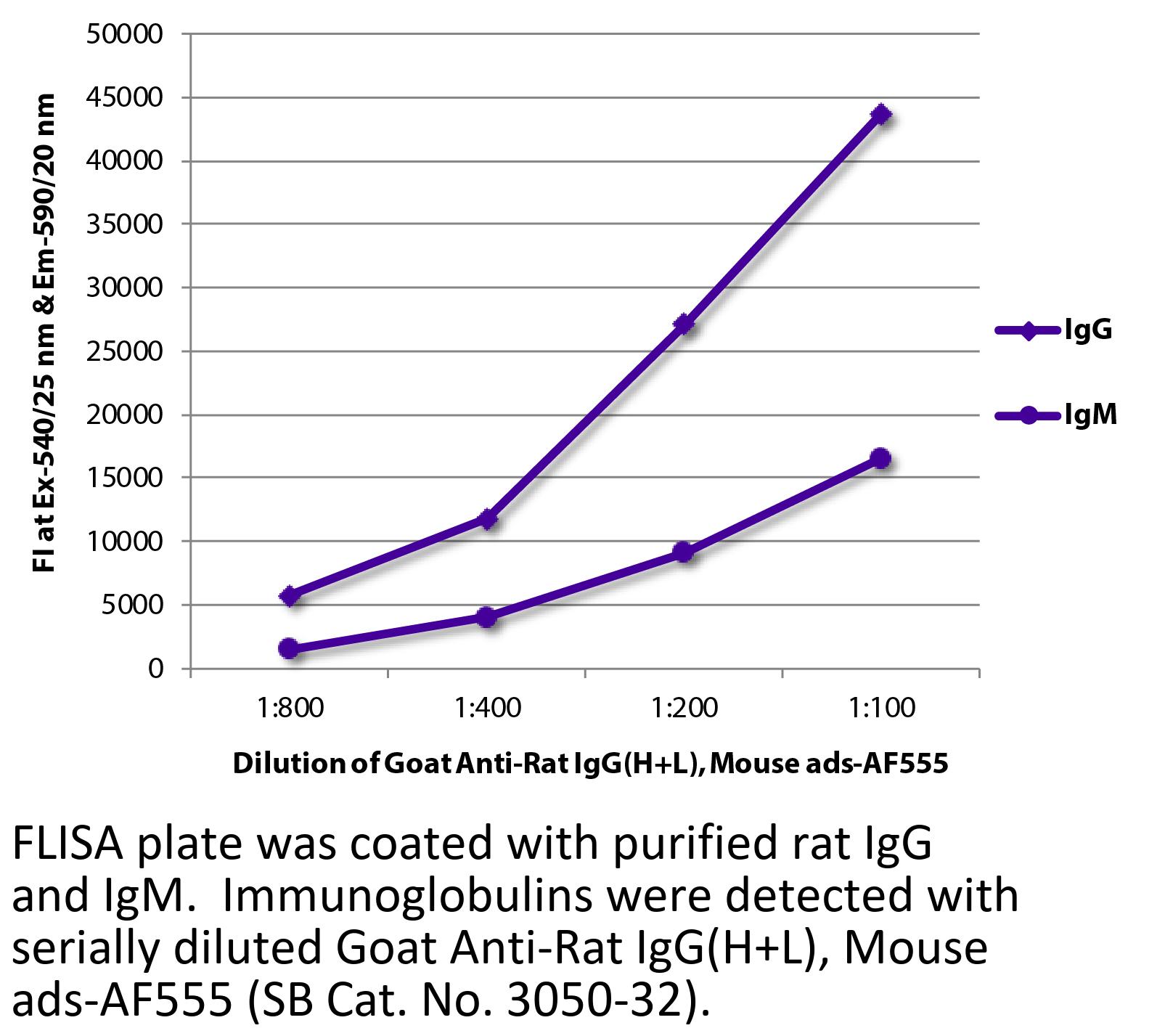 Goat Anti-Rat IgG(H+L)-Alexa Fluor 555 antibody with minimal reactivity to mouse proteins for use in immunohistochemistry / immunocytochemistry and western blot assays.