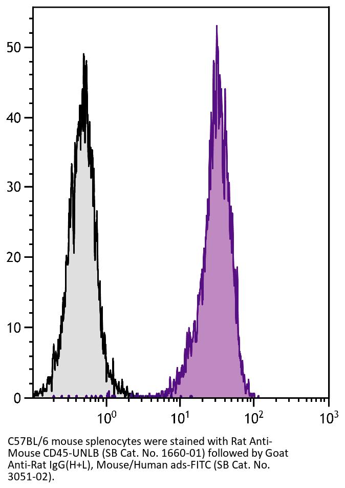 Goat Anti-Rat IgG(H+L)-FITC antibody with minimal reactivity to mouse and human proteins for use in flow cytometry and other fluorescent assays.