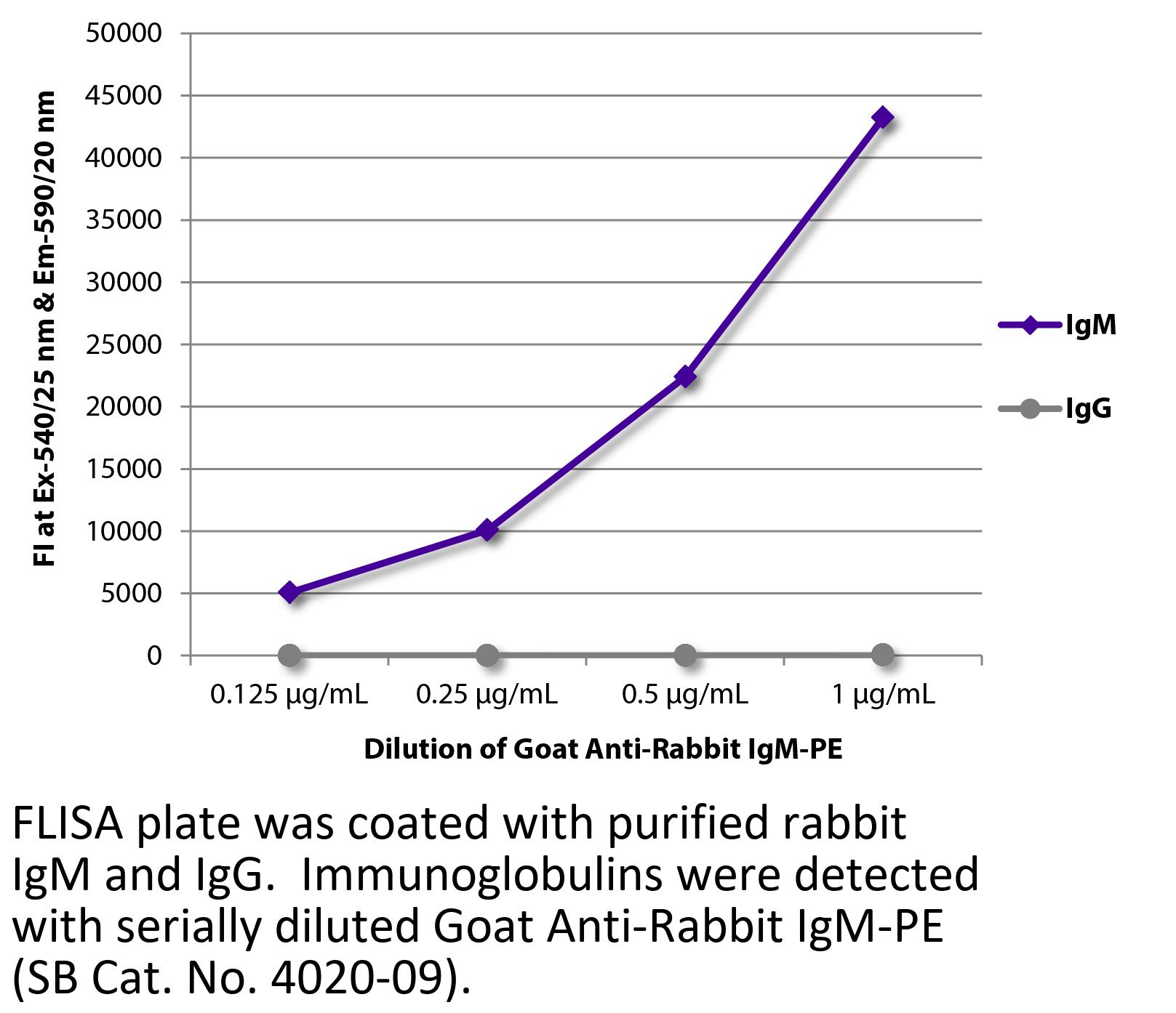 Goat Anti-Rabbit IgM-PE antibody for use in flow cytometry assays.